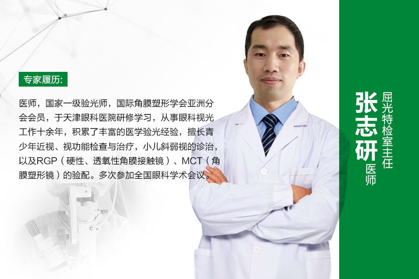 简介:医师,国家一级验光师,国际角膜塑形学会亚洲分会会员,于天津眼科医院研修学习,从事眼科视光工作十余年,积累了丰富的医学验光经验,擅长青少年近视、视功能检查与治疗,小儿斜弱视的诊治,以及RGP(硬性、透氧性角膜接触镜)、MCT(角膜塑形镜)的验配。多次参加全国眼科学术会议。